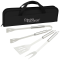 - Great for bringing on tailgates or camping trips, the set includes a spatula, fork and tongs for all of your grilling needs.