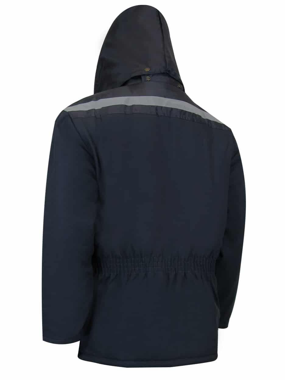 • Removable hood made of 420 deniers nylon with PVC coating insulated with 8 oz lining 100% polyester, interlined with polar fleece 100% polyester